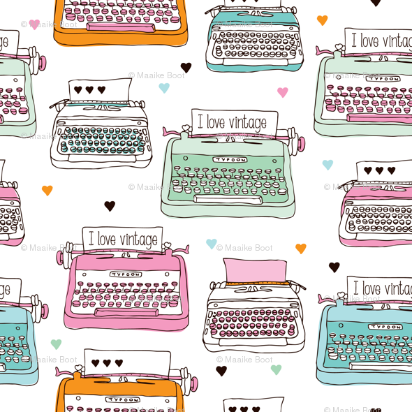 Cute Vintage Typewriter Illustration Pattern Wallpaper