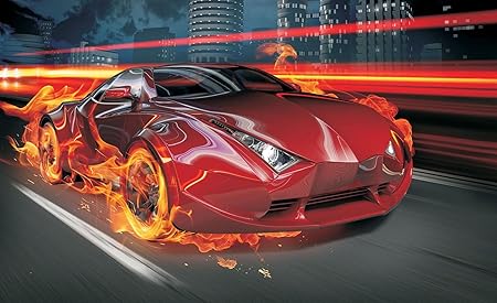 Welt Der Traume Photo Wallpaper Mural Red Car In Fire P4 254cm X