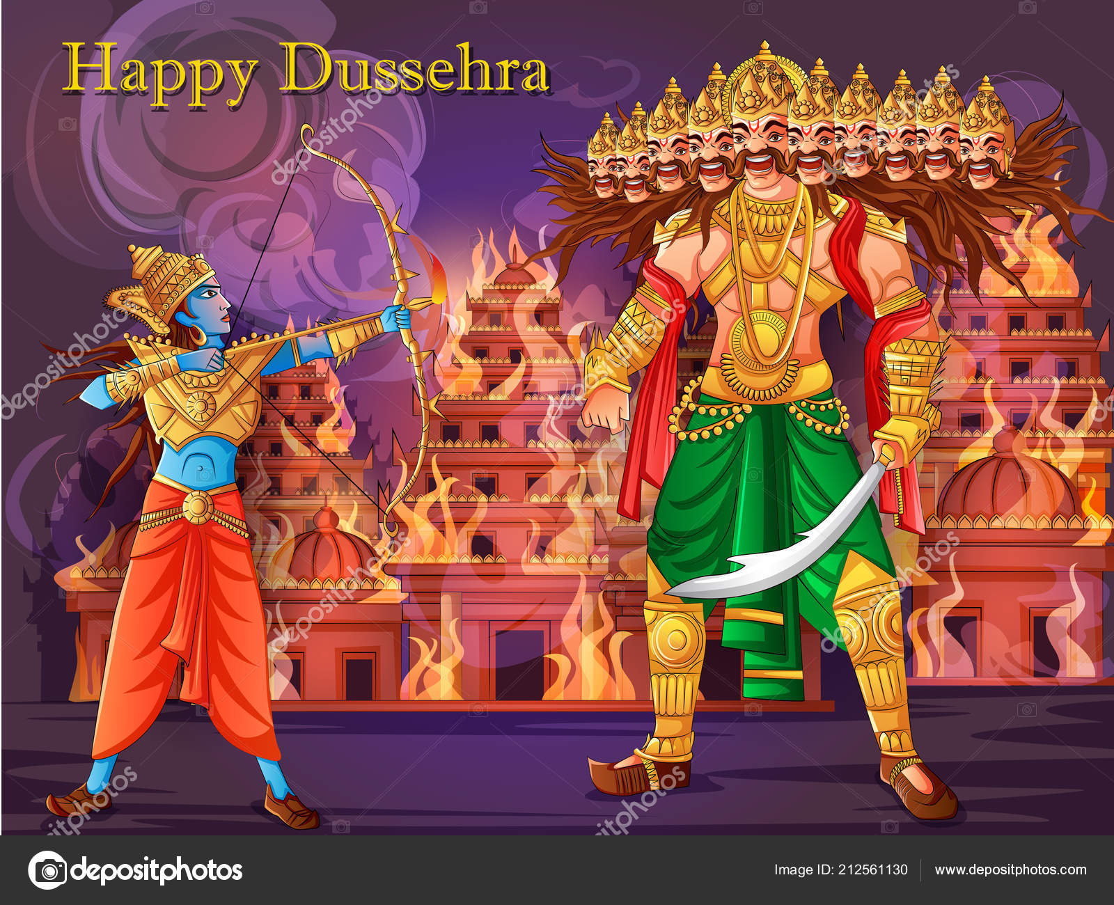 Indian God Rama Killing Ravana On India Festival Happy Dussehra